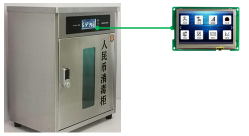 那有沒有一款既安全又放心的智能消毒柜呢?答案是有的。現推出有大彩串口屏應用其中的多功能智能消毒柜。本產品具有臭氧+紫外 線雙重消毒功能 ,采用紫外線加臭氧雙消毒因子組合消毒方式對人民幣進行消毒 ,能有效地殺滅附在錢幣上的各類細菌 ,無二次污染 ,能確保安全使用;同時消毒柜采用2 5 3.7 n m的U V- C直射細菌 ,U V- C光子力量破壞微生物集體細胞中的D NA 及RNA,使其結構發生裂變或光化學聚合反應,從而喪失其繁殖力及生存力,達到殺菌消毒的目的。