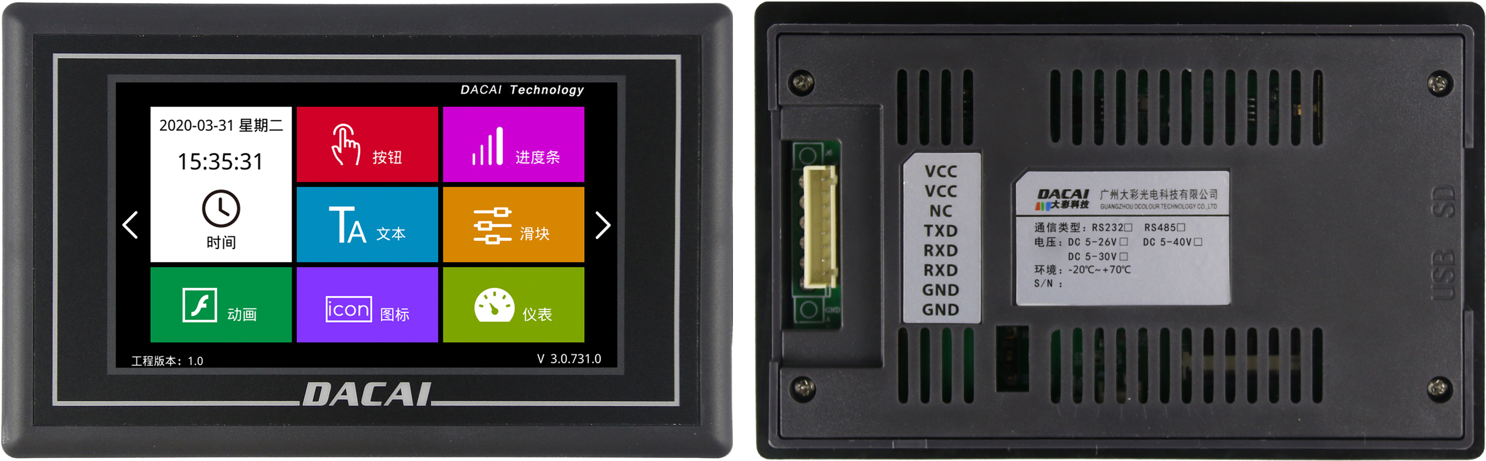 (3) 組態開發:使用VISUAL TFT上位機軟件開發,具有豐富的組態控件,給客戶足夠的自由發揮空間。