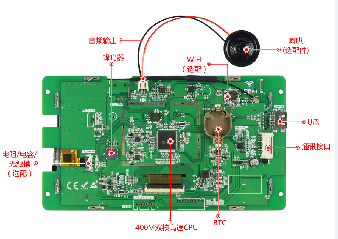 使用VISUAL TFT上位機軟件開發,具有豐富的組態控件,給客戶足夠的自由發揮空間。大彩物聯型彩屏支持音頻、視頻、wifi及Lua腳本功能,為客戶的開發提供無限可能。