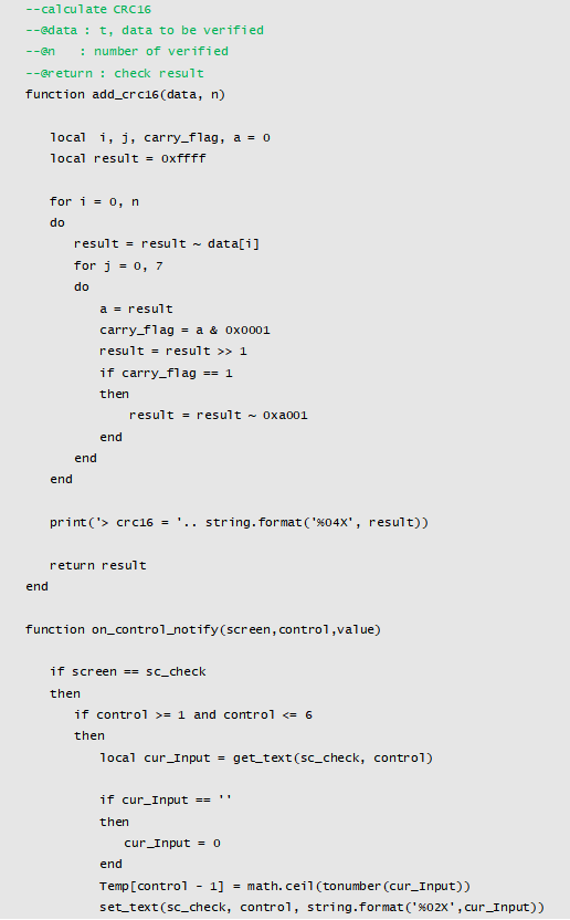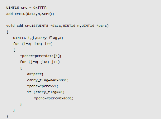 自定義函數,對指定的數組、檢驗個數進行CRC計算。