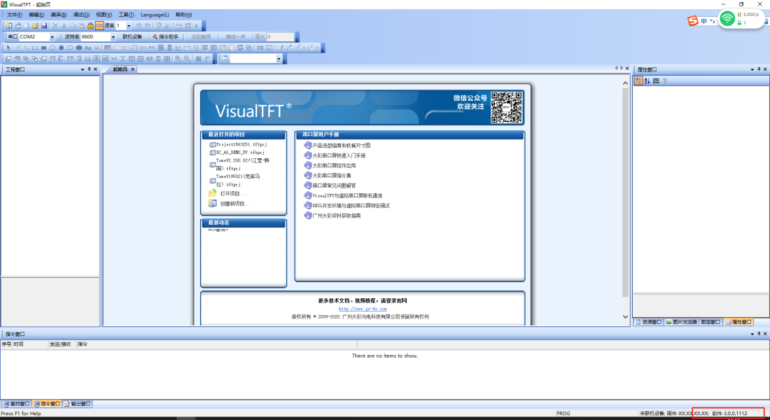 1) 打開VisualTFT軟件啟動頁面如圖2-1軟件版本,右上角會顯示的軟件版本號;
