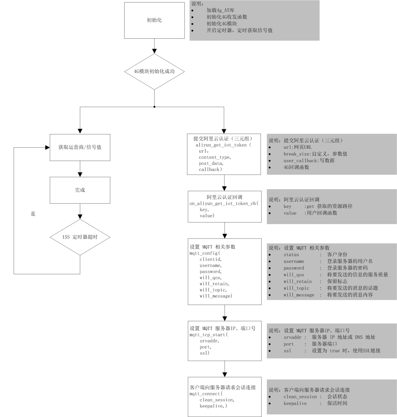 當4G初始化完成后,提交阿里云認證(三元組),代碼如程序清單 2所示: