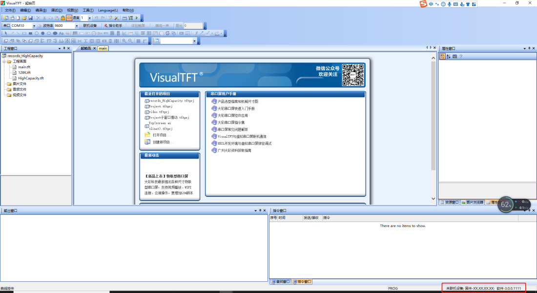 1) 打開 VisualTFT 軟件啟動頁面如圖 2-1 軟件版本,右上角會顯示的軟件版本號;