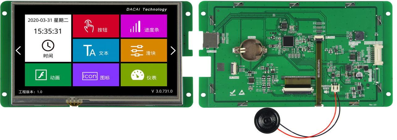 該例程使用大彩M系列7寸串口屏DC80480M070_1111_0C為驗證開發平臺。如圖5-1所示;