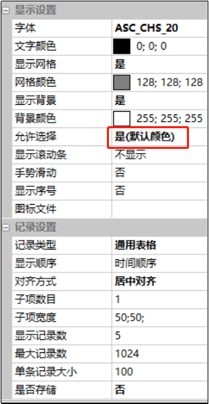 數(shù)據(jù)記錄控件,主要用于替代菜單控件的顯示,通過選中對應(yīng)的選項,在文本控件中顯示最終選中的選項,相應(yīng)的屬性如圖3-4所示。
