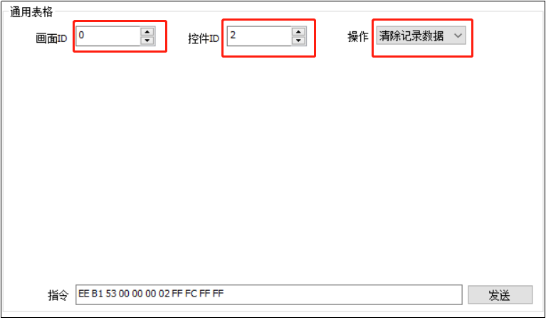 串口指令更新的步驟主要是:先將原來的菜單選項清空,然后重新更新需要顯示的選項。對應(yīng)的操作即串口給屏幕發(fā)送相應(yīng)的指令即可,關(guān)于實現(xiàn)上面兩個步驟,用到的指令有清除記錄數(shù)據(jù)指令以及添加多行記錄的指令。清除記錄數(shù)據(jù)的指令參考圖3-6。