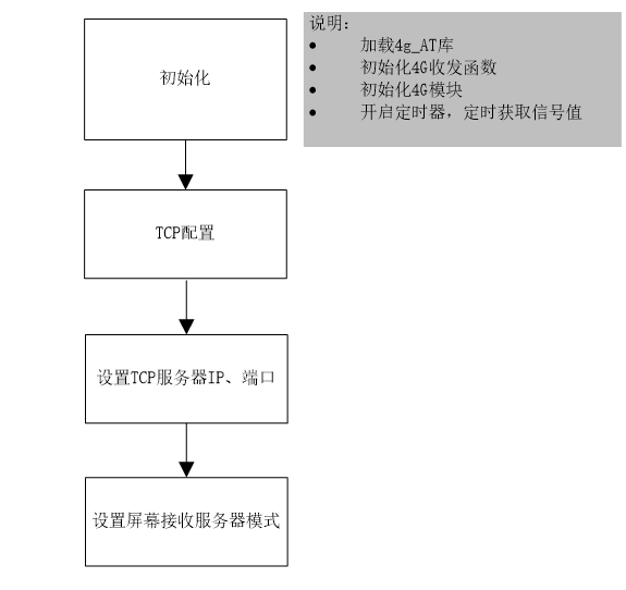 本例程中,屏幕上電執行初始化操作,如加載4G AT 指令的庫、初始化4G模塊、定時獲取運營商和信號值等。
