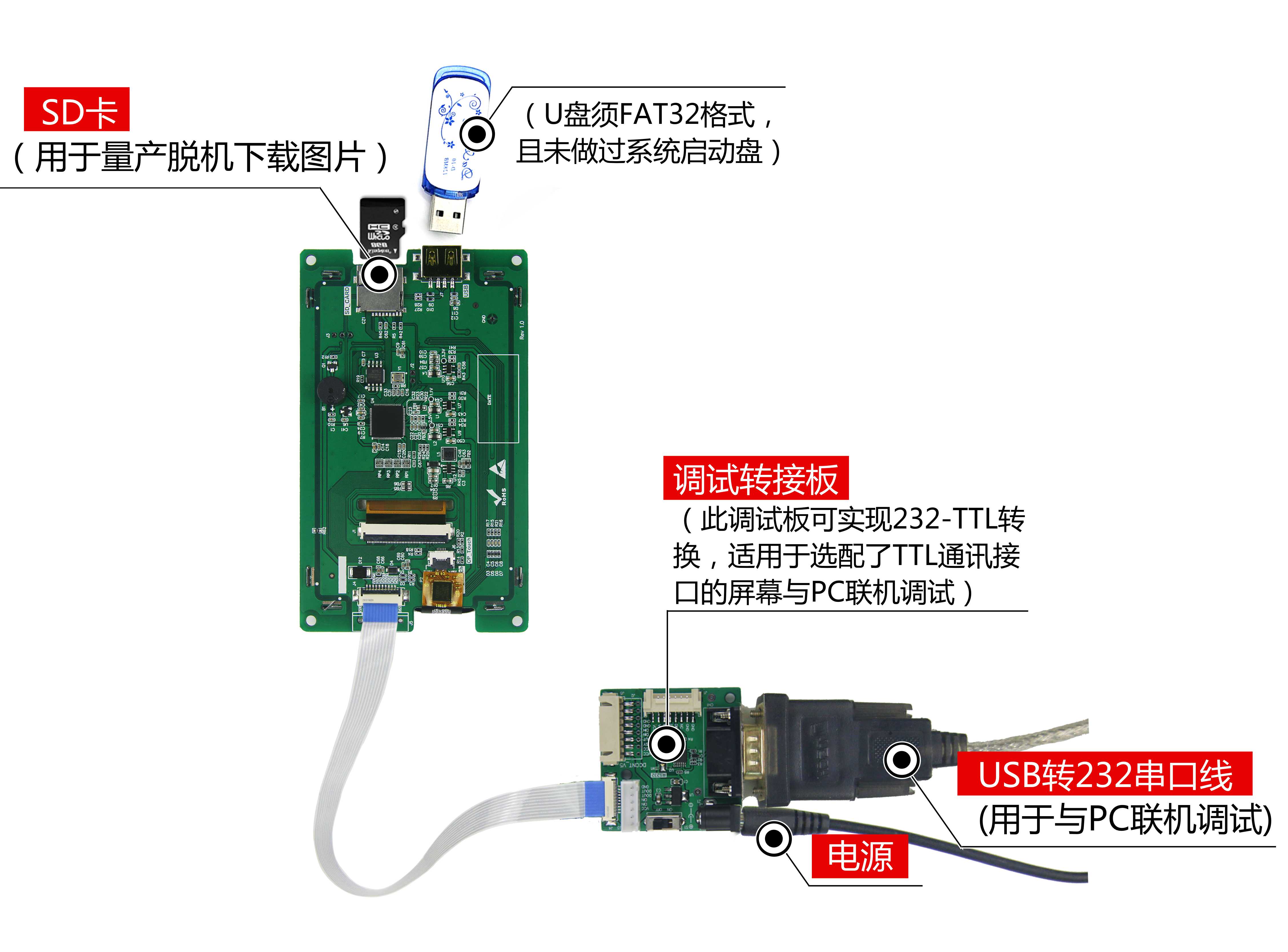 插入SD卡或U盤本地升級/支持用戶主板遠(yuǎn)程串口升級屏幕固件 |